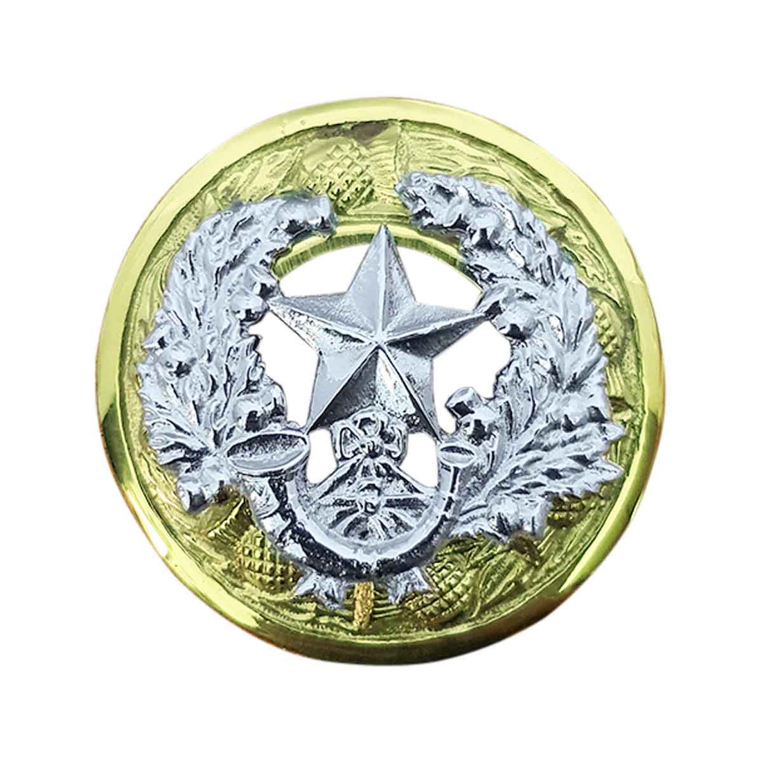 Saint Andrew Plaid Brooch Round Thistle Flower. Available in Chrome, gold and antique finish. Choose...