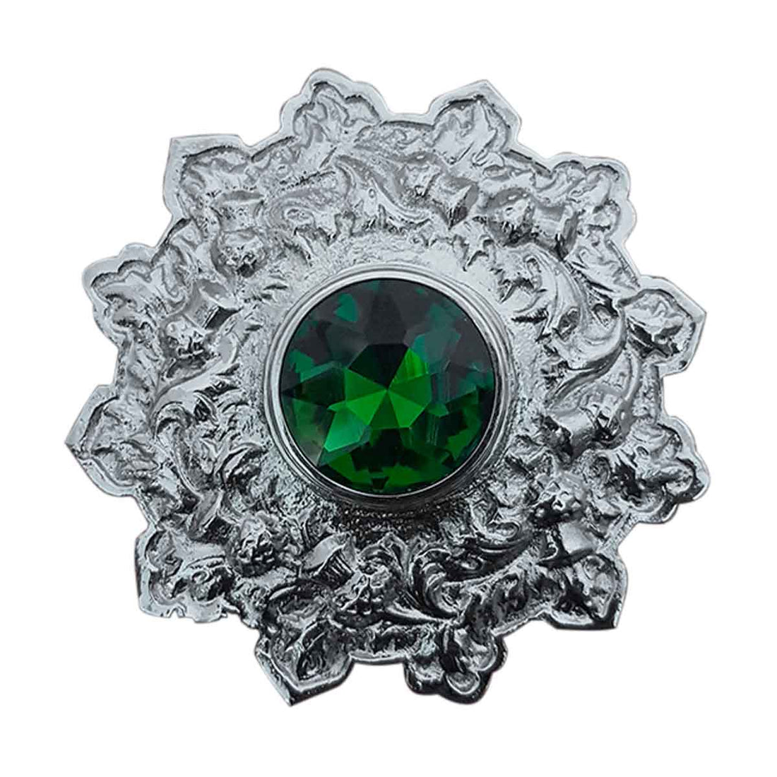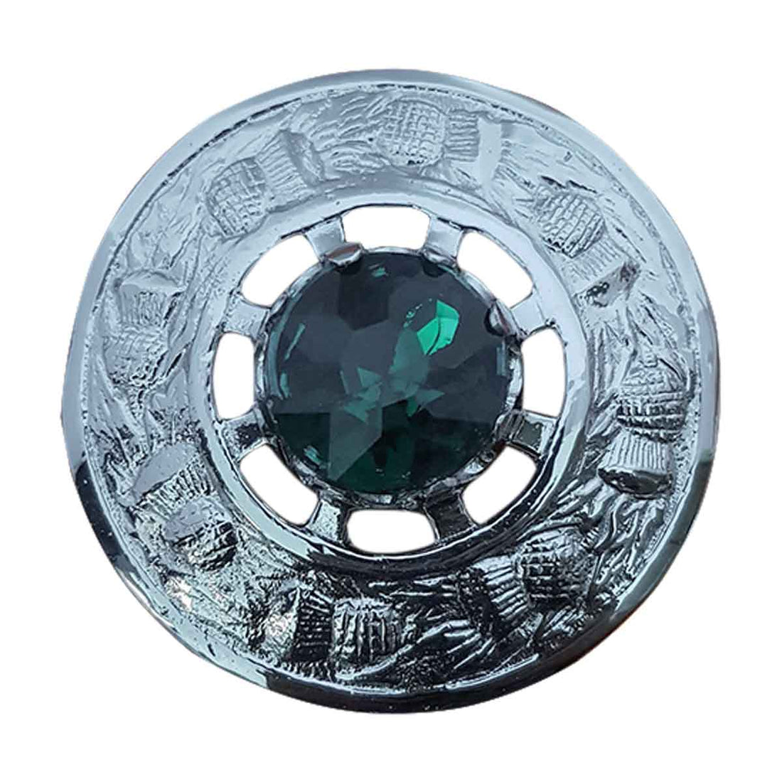 Plaid Brooch. Round with green stone. Available in Chrome, gold and antique finish. Dispatch time: 3...