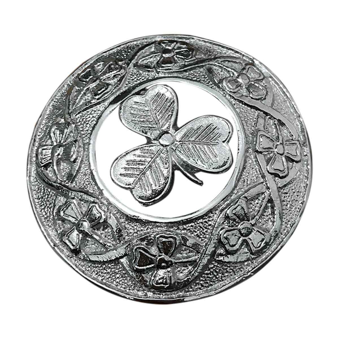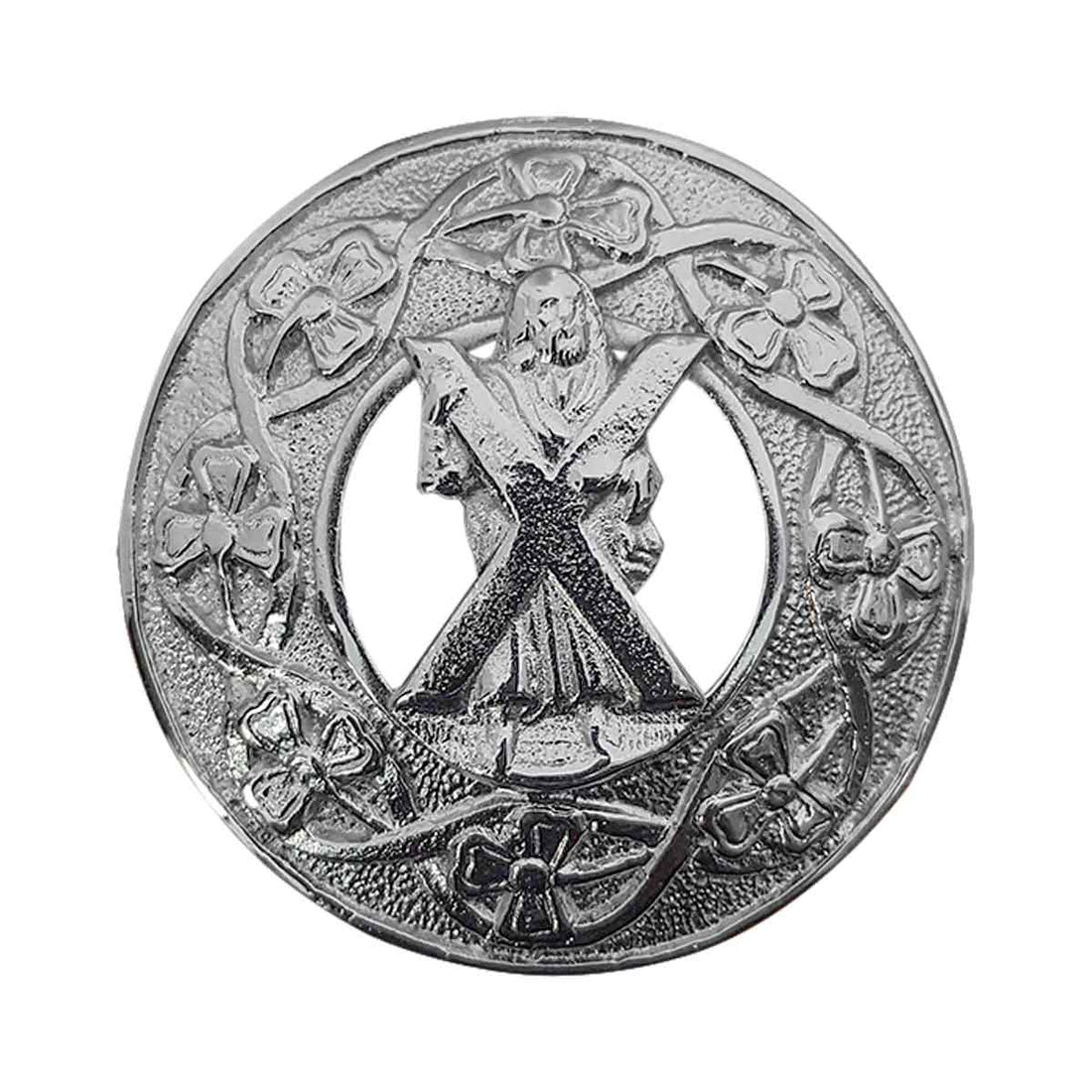 Plaid Brooch Saint Andrew Round Irish Shamrock. Available in Chrome, gold and antique finish. Dispatch...