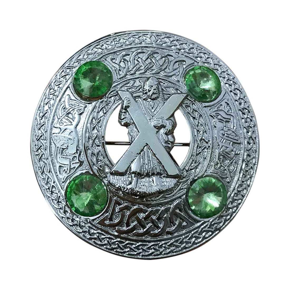 Plaid Brooch Saint Andrew Round 4 Green Stones