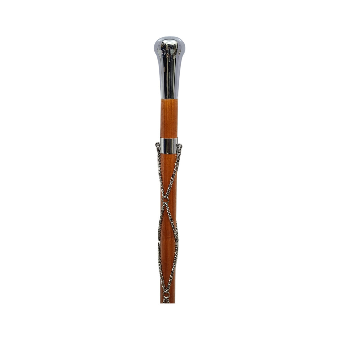 Parade Stick 36" length. Malacca Cane. Wrapped with chain. Chrome plated knobs on both sides....